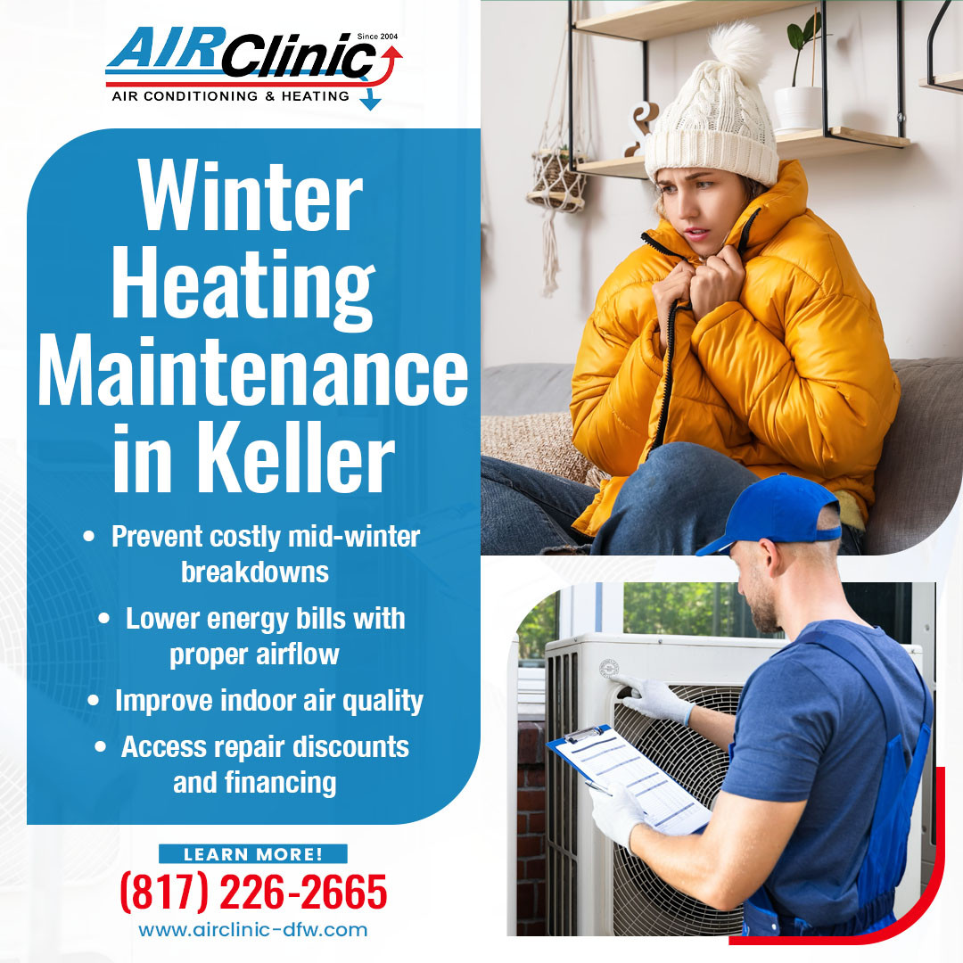 Keller, TX- Air Clinic announced new winter maintenance recommendations to help homeowners prevent costly heating failures and reduce seasonal energy consumption. The announcement responds to rising service calls linked to system strain, deferred maintenance, and outdated equipment. The company emphasized that timely heater repair and preventive inspections are essential for maintaining safe, reliable home heating during winter temperature swings.