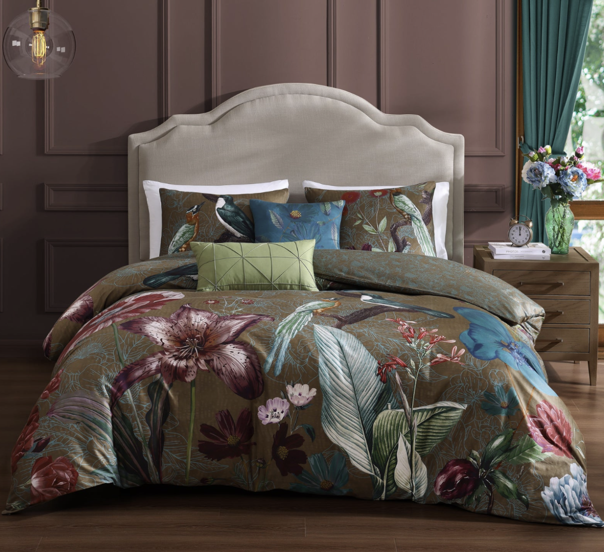 Birds on Chocolate Brown comforter set combines lively prints with everyday practicality