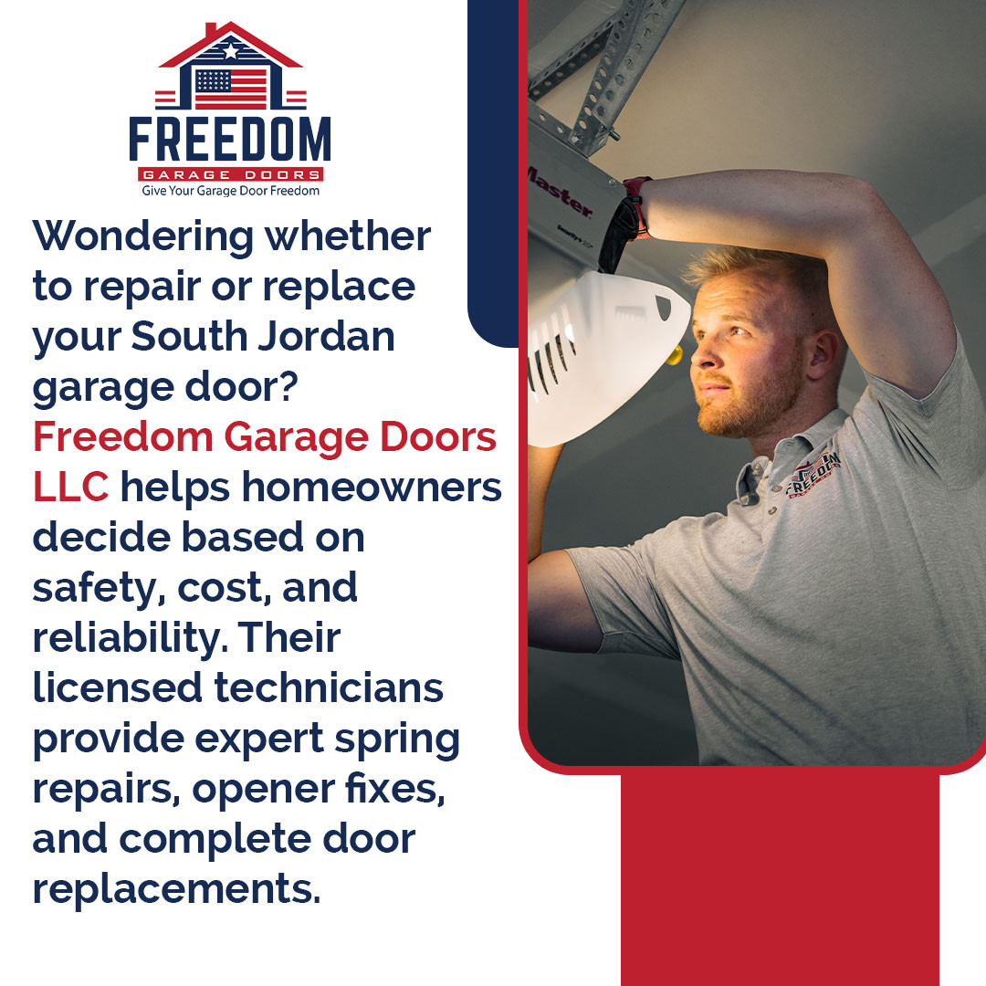 South Jordan homeowners looking for reliable garage door services can turn to Freedom Garage Doors LLC for expert residential garage door repair, precise garage door opener repair, dependable garage door spring repair, or a complete door replacement to enhance safety and performance. Their licensed technicians provide fast, professional service to keep your doors operating smoothly, quietly, and efficiently.