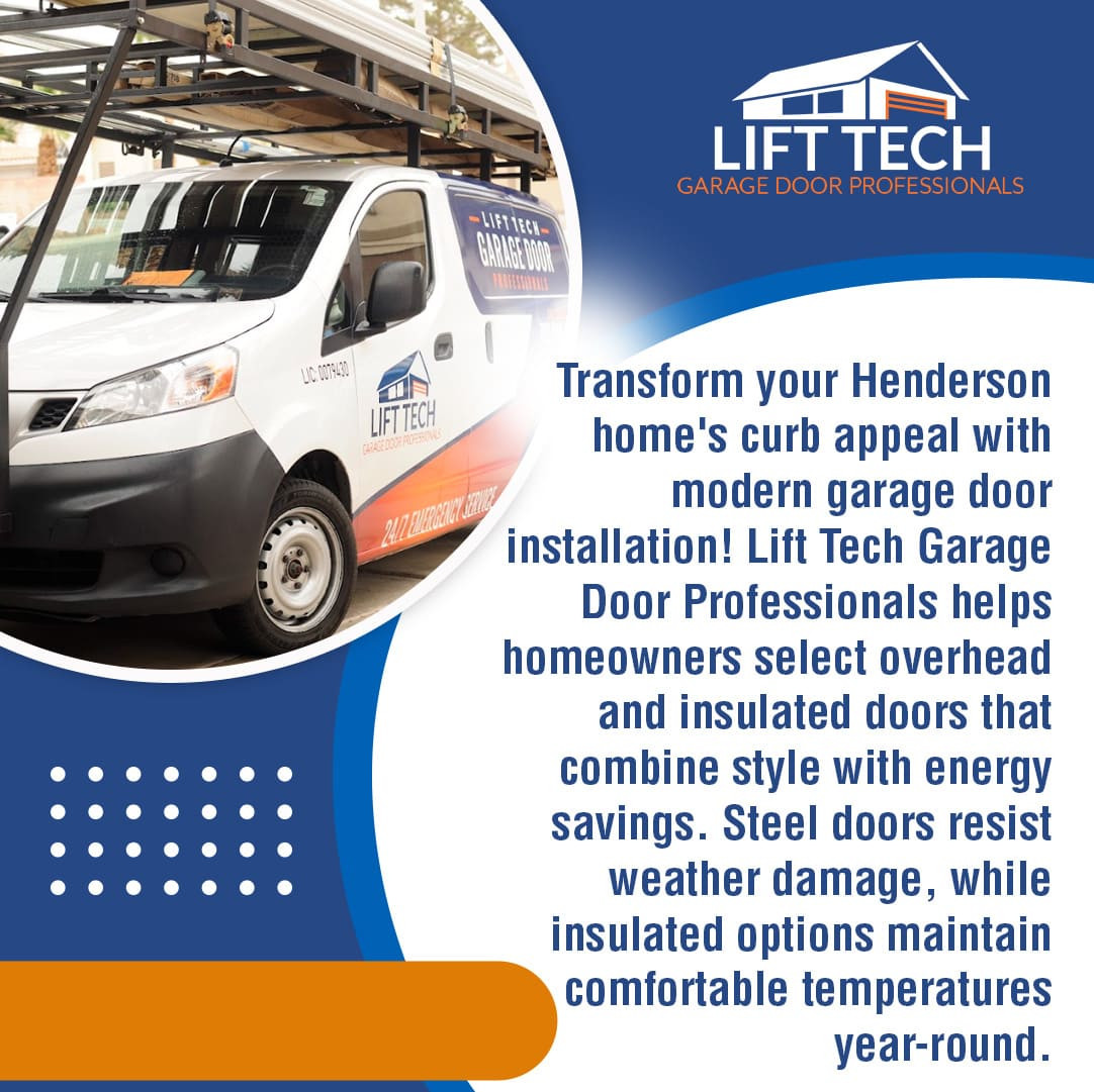 Henderson residents are upgrading homes with modern garage door installation and garage door replacement solutions from Lift Tech Garage Door Professionals to enhance both functionality and curb appeal. Homeowners are choosing options that combine style, durability, and practical benefits, turning garages into reliable and attractive spaces. Popular choices include overhead models for smooth, space-saving operation and insulated designs to maintain comfortable indoor temperatures, protect stored items, and reduce outside noise by up to 40%, making garages more usable and efficient throughout the year.
