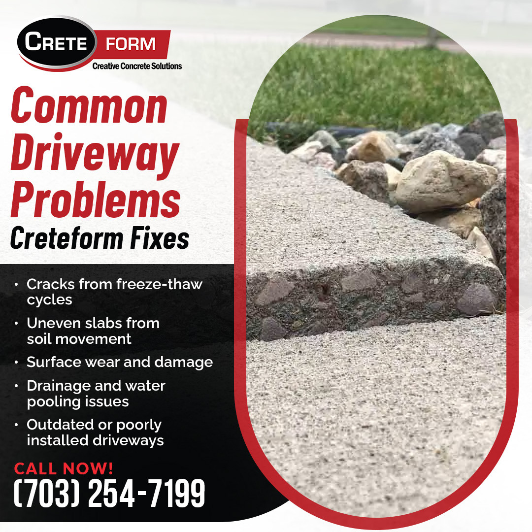 Original Source: https://creteform.com/common-driveway-problems-homeowners-face-and-how-driveway-replacement-repair-in-manassas-fixes-them/