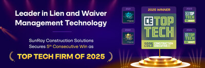 FORT LAUDERDALE, Fla., Oct. 15, 2025 /PRNewswire-PRWeb/ -- SunRay Construction Solutions has once again been named to Construction Executive magazine's prestigious Top Construction Technology Firms™ list — marking its fifth consecutive year of recognition. This milestone reaffirms SunRay's position as a trusted national leader in lien rights and payment management technology, celebrated for its innovation, reliability, and service excellence.