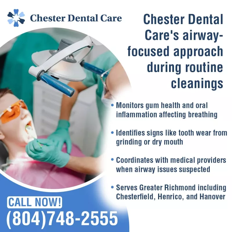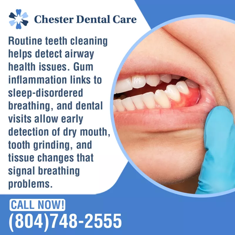 CHESTER, VA – Chester Dental Care is sharing information with patients and the Greater Richmond community about the relationship between routine dental cleanings and airway health. While teeth cleaning is best known for supporting gum and tooth health, growing research shows that oral conditions can also influence breathing patterns and sleep quality.